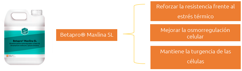 Betapro® Maxlina SL es un bioestimulante que ayuda a proteger a las plantas de la deshidratación y a aumentar su tolerancia a la sequía. Betapro® Maxlina SL aplicado regularmente atenúa el estrés y mejora la condición del cultivo y la producción. Combina las cualidades del extracto de algas procedente de Ascophyllum nodosum con las propiedades de la glicina betaína y aminoácidos específicos (prolina) para: