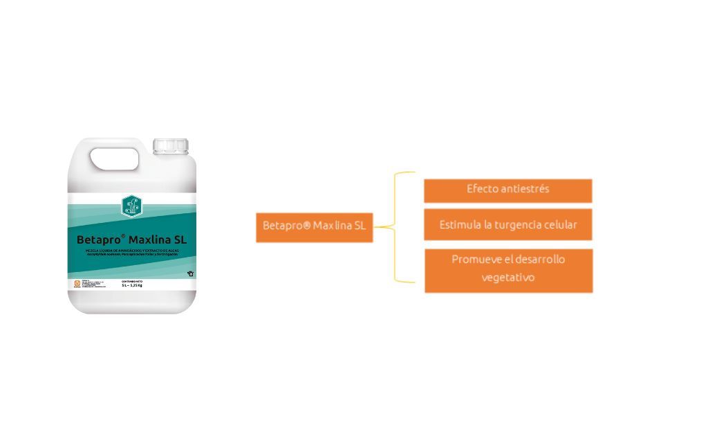 - Betapro® Maxlina SL estimula la brotación y crecimiento y reduce el estrés producido por las altas temperaturas.